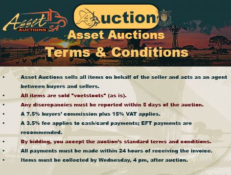 Description :Dear Buyer, Welcome to Asset Auctions, please note the Terms & Conditions for the auction on the images.